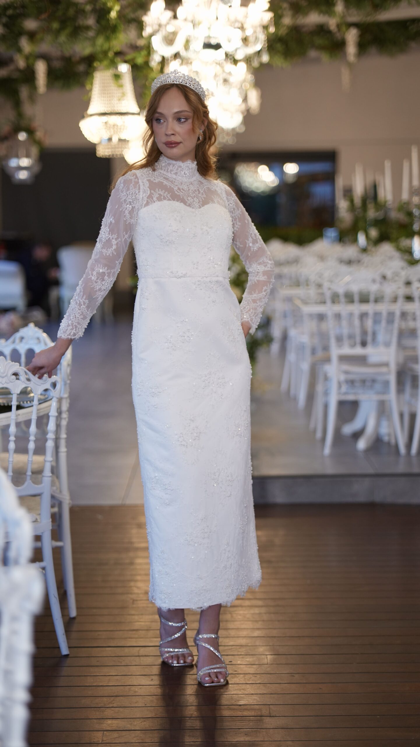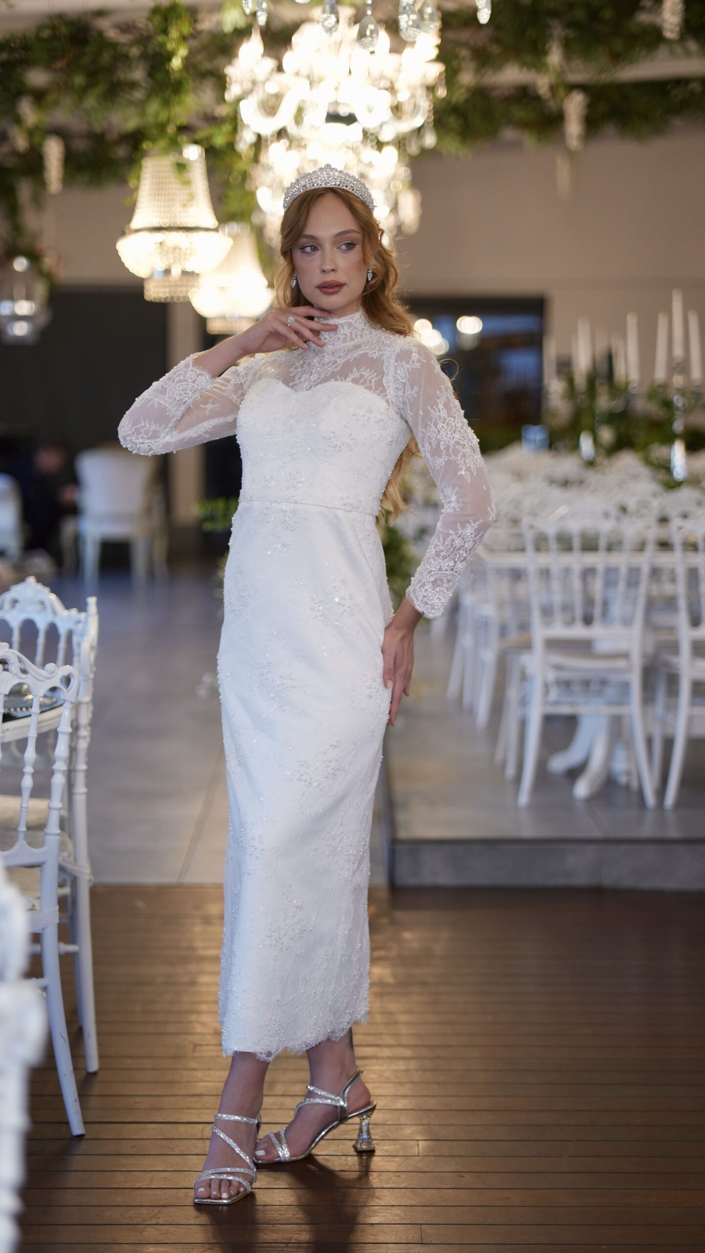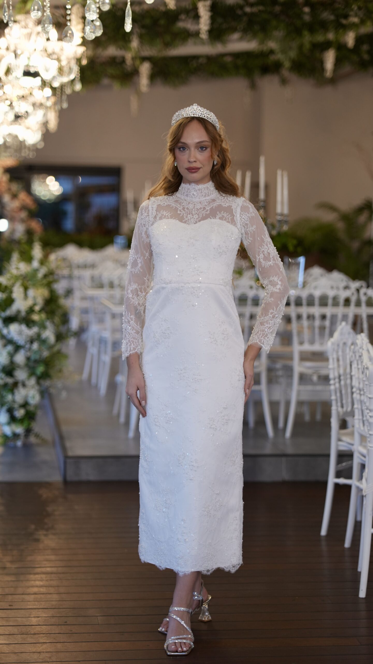 Dantel dokusu, uzun kollu silueti ve sade şıklığıyla Bellis, söz ve nişan için asil bir tercih.
