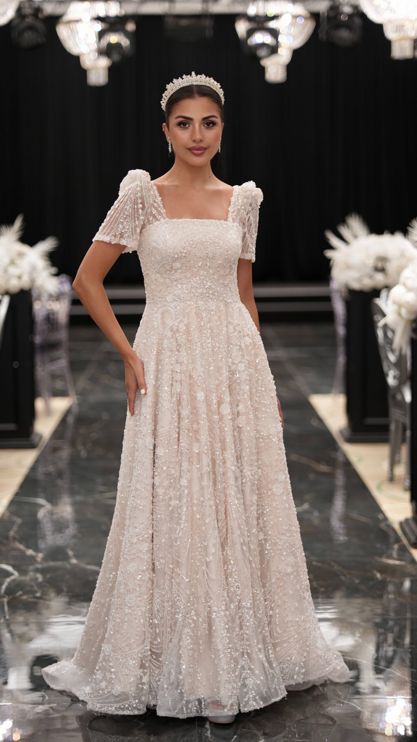 Işıltılı inciler, ince işlenmiş nakışlar ve romantik kesimiyle Feray, her adımda büyüleyici bir hikâye anlatıyor.