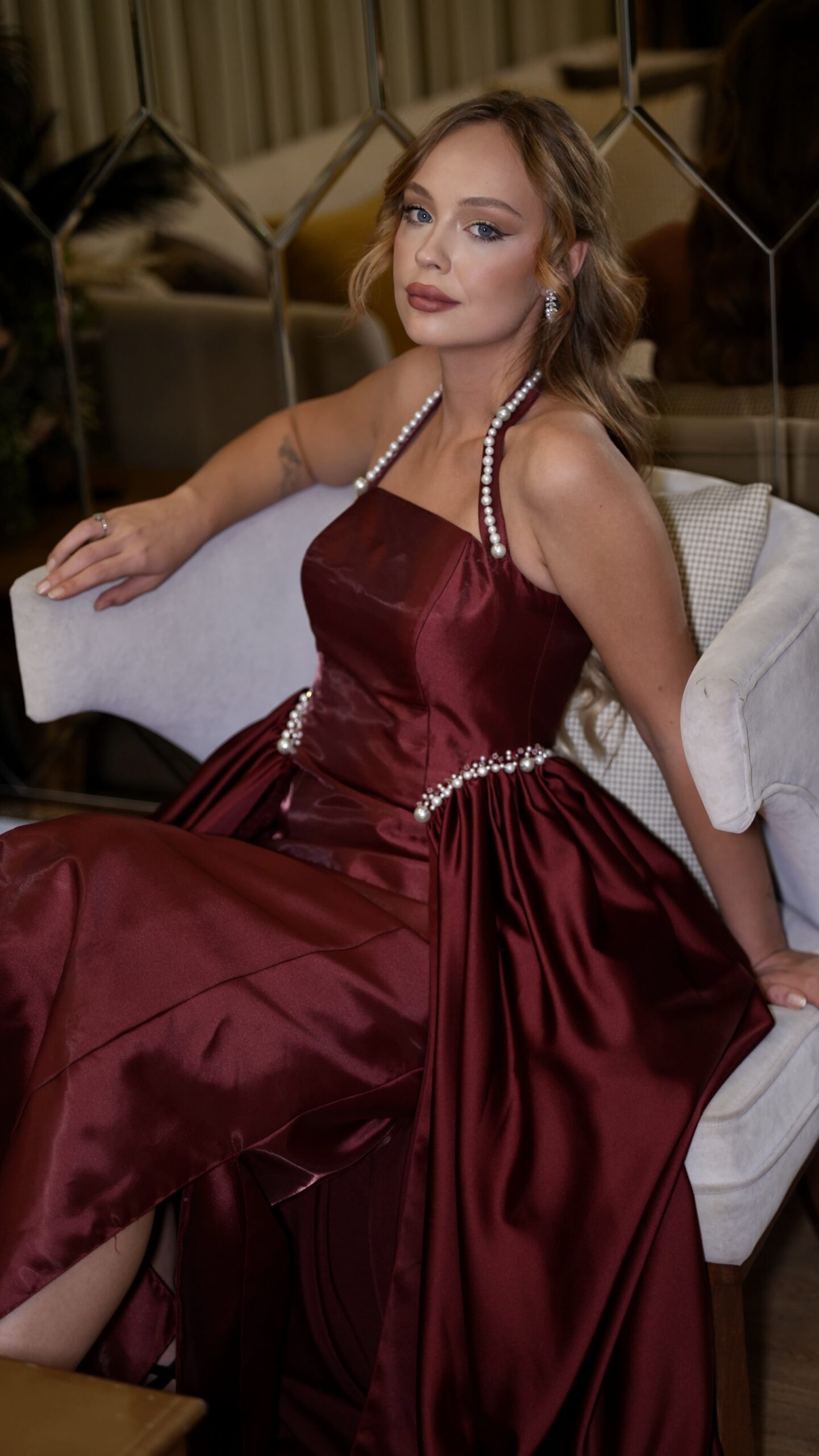 Modern kesimi ve akışkan kap detaylarıyla RUBINA, özel günlerde iddialı ama sofistike bir görünüm isteyenler için tasarlandı.