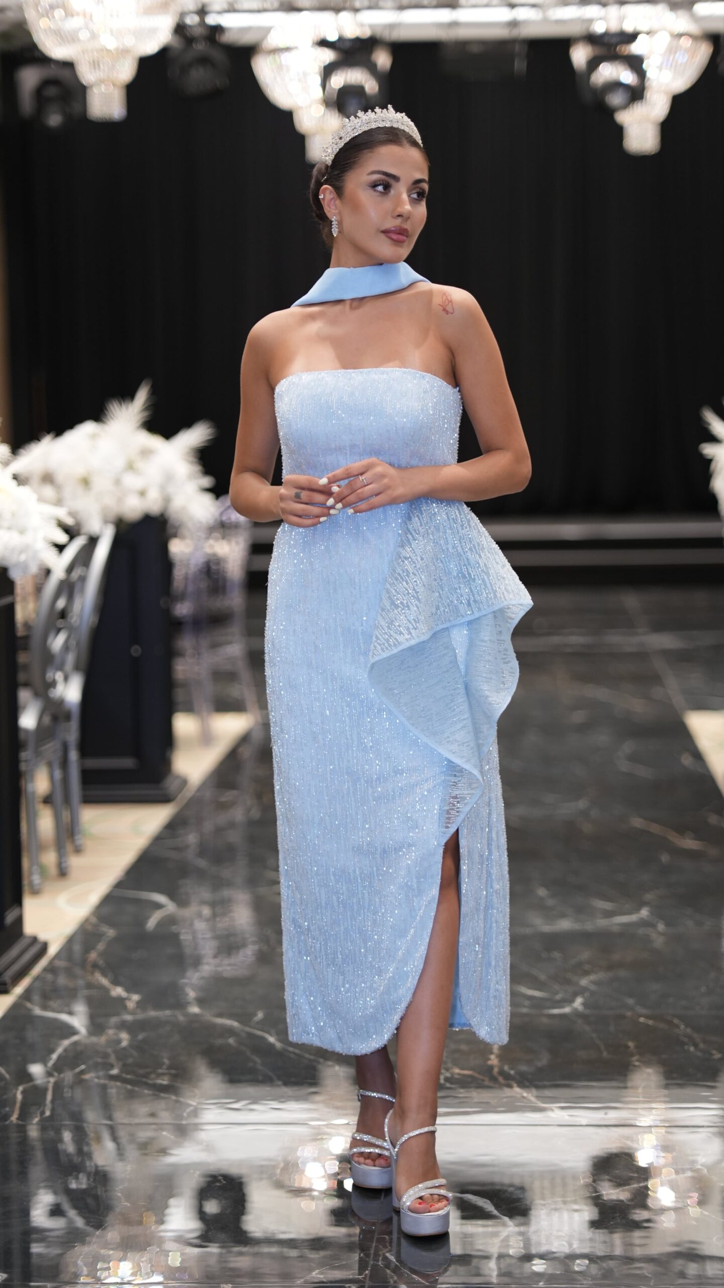 Nişan, söz ve özel davetlerde tüm gözleri üzerinize çekecek bu zarif elbise, hem şıklığı hem de rahatlığı bir arada sunuyor. 🌸 Işıltılı yüzeyi ve modern kesimiyle unutulmaz bir stil yaratın.